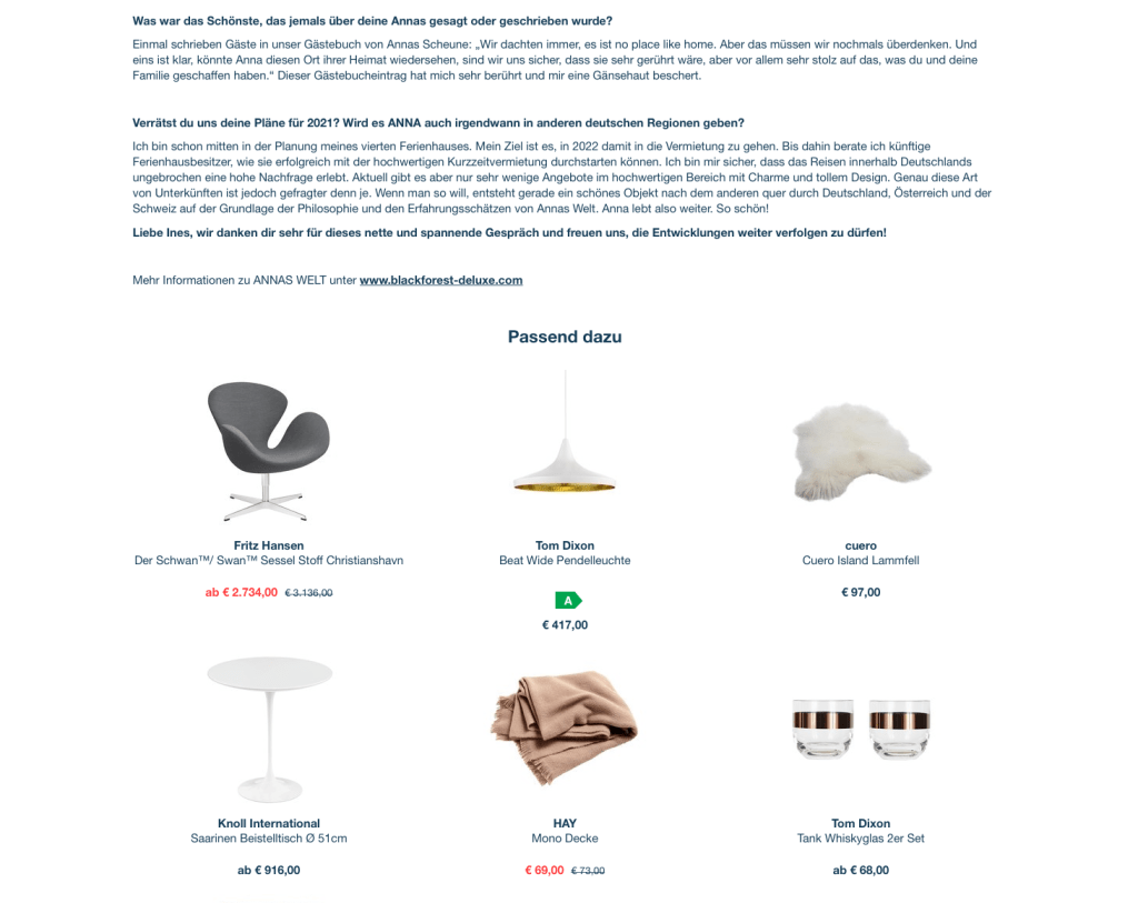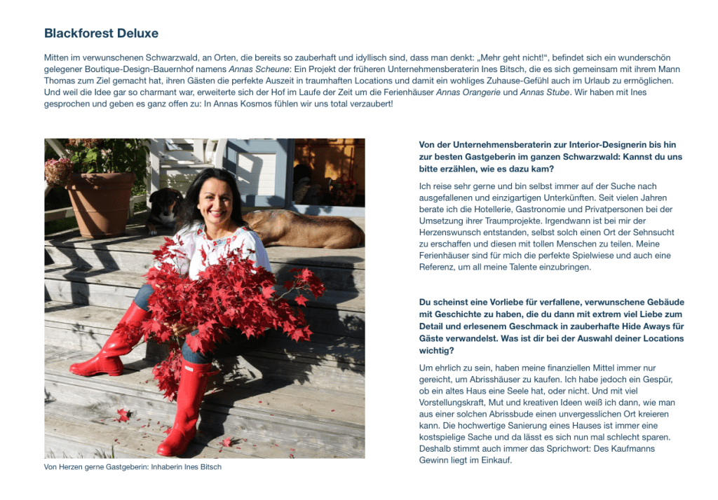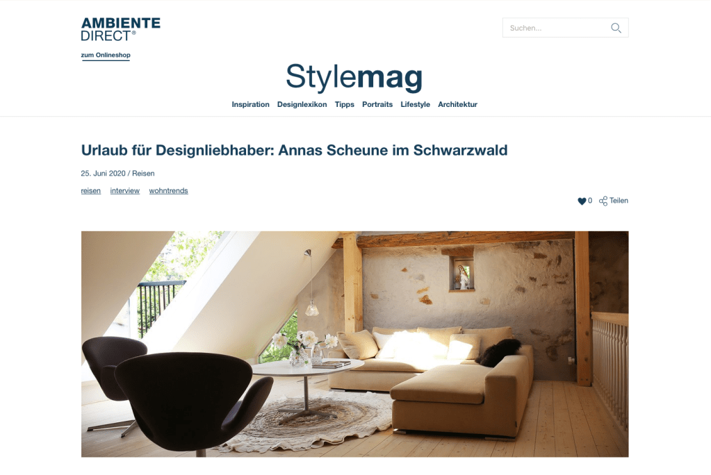 ANNAS SCHEUNE im STYLEMAG von AMBIENTE DIRECT im Interview mit INES BITSCH, der Gastgeberin von ANNAS WELT in Buchholz bei Waldkirch.